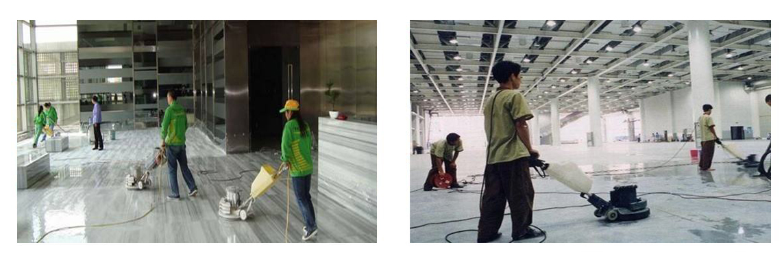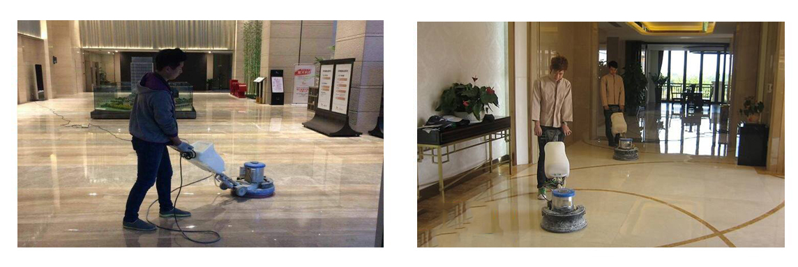 2. 石材翻新:針對(duì)磨損、劃痕、失去光澤的石材,利用打磨機(jī)配合不同目數(shù)的磨片,從粗磨到細(xì)磨逐步進(jìn)行打磨,消